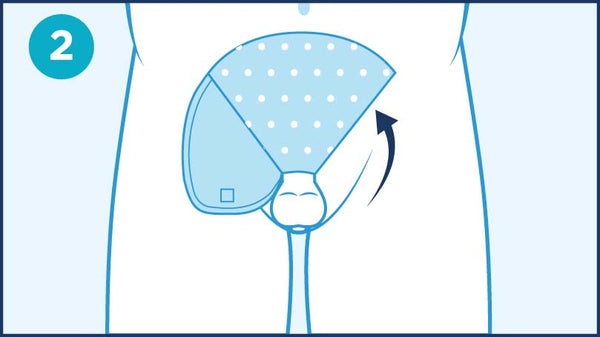 With two fingers, pinch the square fastener and inner flap together to ensure attachment. The final application will look like a coffee filter. The opening at the top allows for airflow, thus keeping the entire area dry.